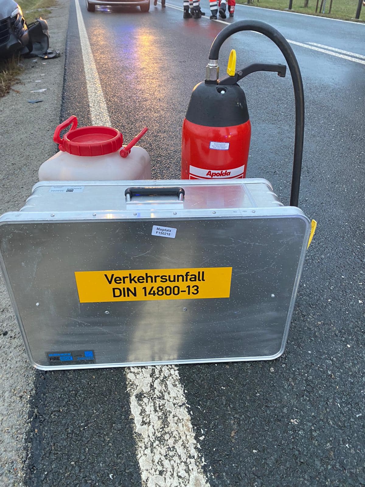 Mit hydraulischen Rettungsgerät musste die Person schonend in enger Zusammenarbeit mit dem Notarzt aus dem Fahrzeug befreit und mittels Spineboard aus dem Unfallwrack gerettet werden.
